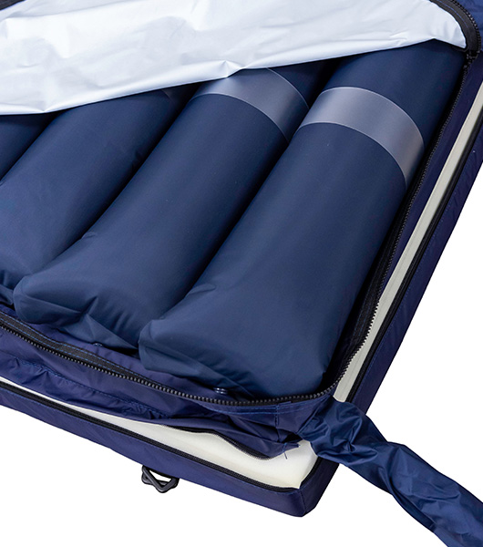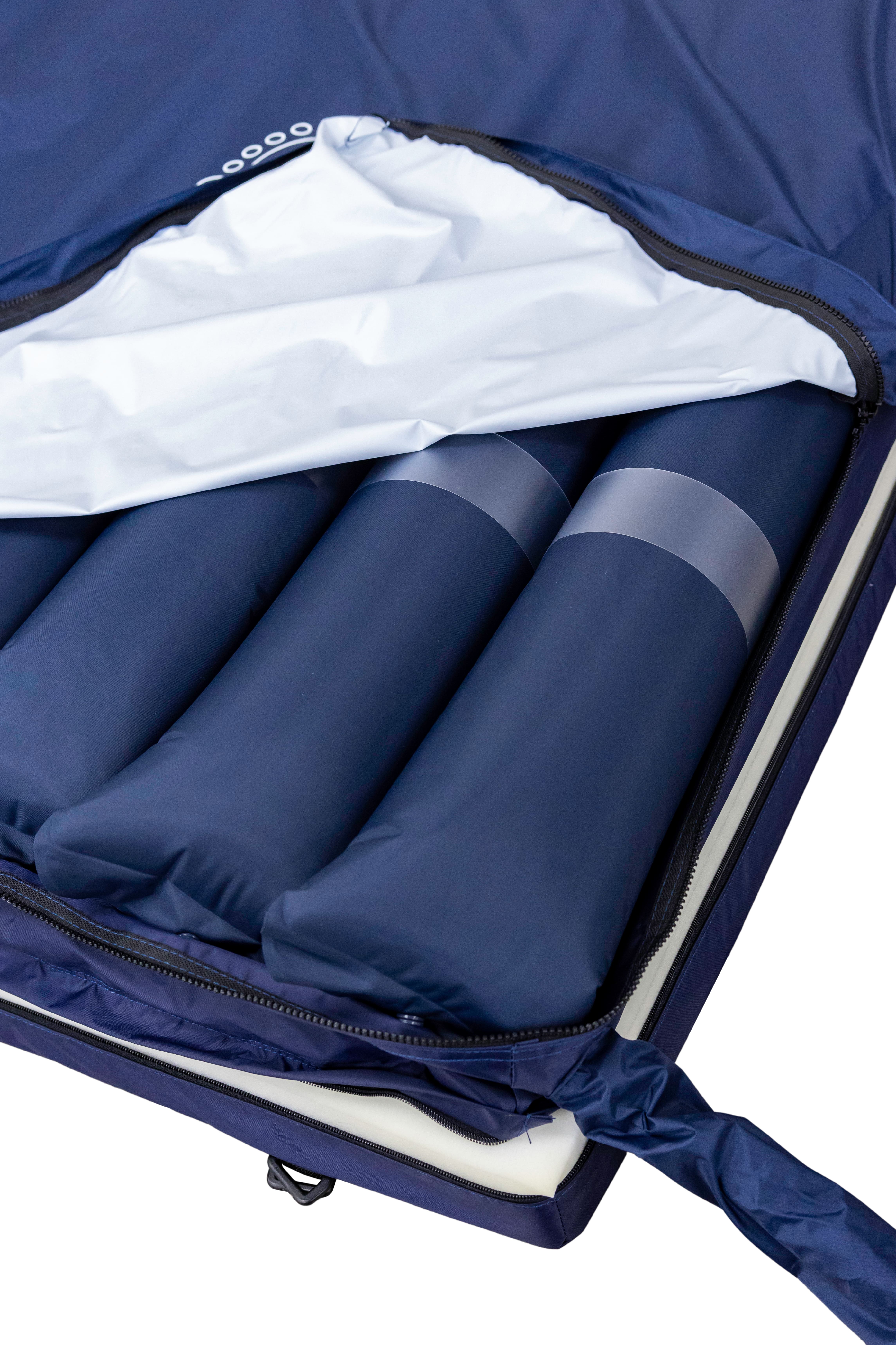 Provides excellent wound care therapy with a combination of Alternating Pressure and Low Air Loss. 20 air cells with 17 alternating pressure cells and 9 low air loss cells, Oasis is designed to be used in the prevention, treatment and management of pressure ulcers. Includes snap-in/snap-out replaceable cells. The air mattress has a high-density 3″ foam base that prevents “bottoming out” and sagging. The base is encased in a separate waterproof compartment to reduce the risk of cross-contamination and ensure easy cleaning.