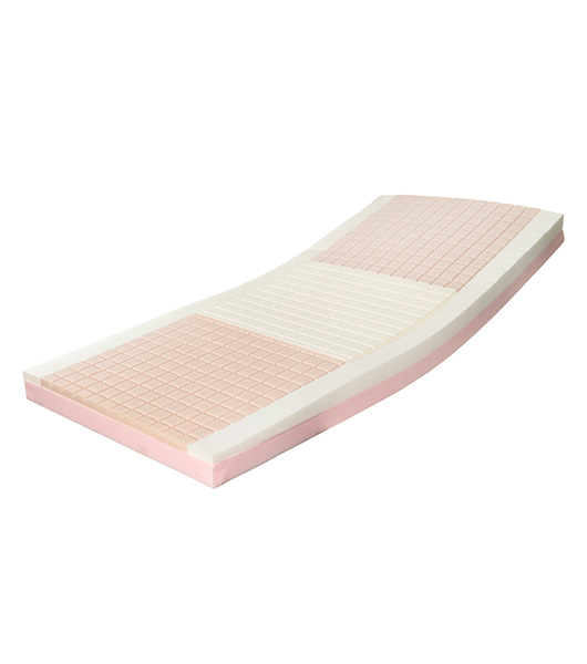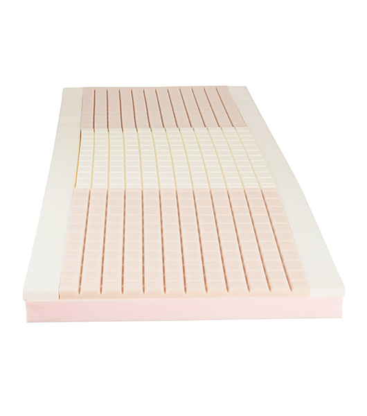 Made with 100% high-density European polyurethane foam with no fillers, the mattress resists sagging and is backed by a 7-year warranty. Designed to provide maximum protection against Stage II pressure ulcers, it features a firm base, a convoluted top layer, and Visco memory foam in the center to relieve pressure in the sacral area.